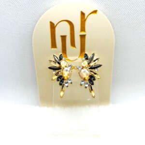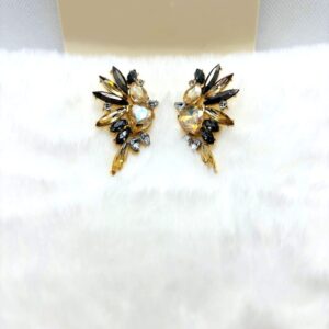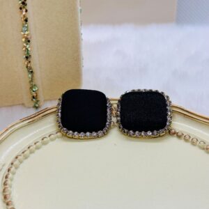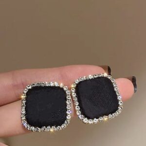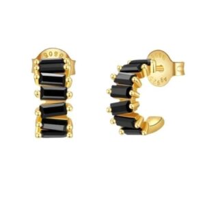 Black CZ Baguette Zircon Stud Earrings/Silver Needle