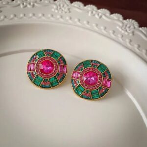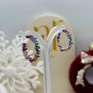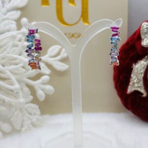 Rainbow Hoop Earrings-Baguette Gemstone-Silver