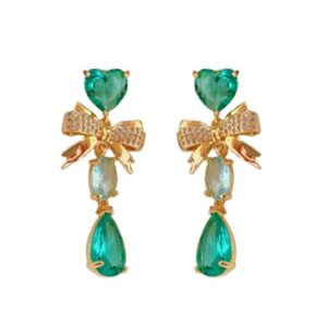 Green Zirconia Bow Knot Earrings | Gold Drop Jewelry