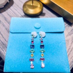 • Rainbow Hoop Earrings-Baguette Gemstone-Silver