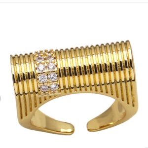 Angel Wings/Leaf Zirconia Open Ring | Gold Adjustable