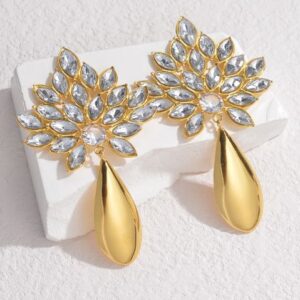 Vintage Gold Teardrop Flower Earrings | Rhinestone