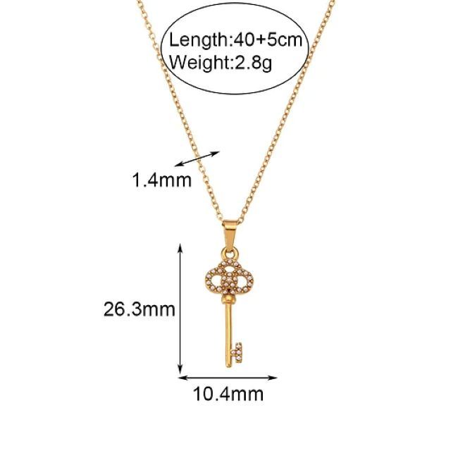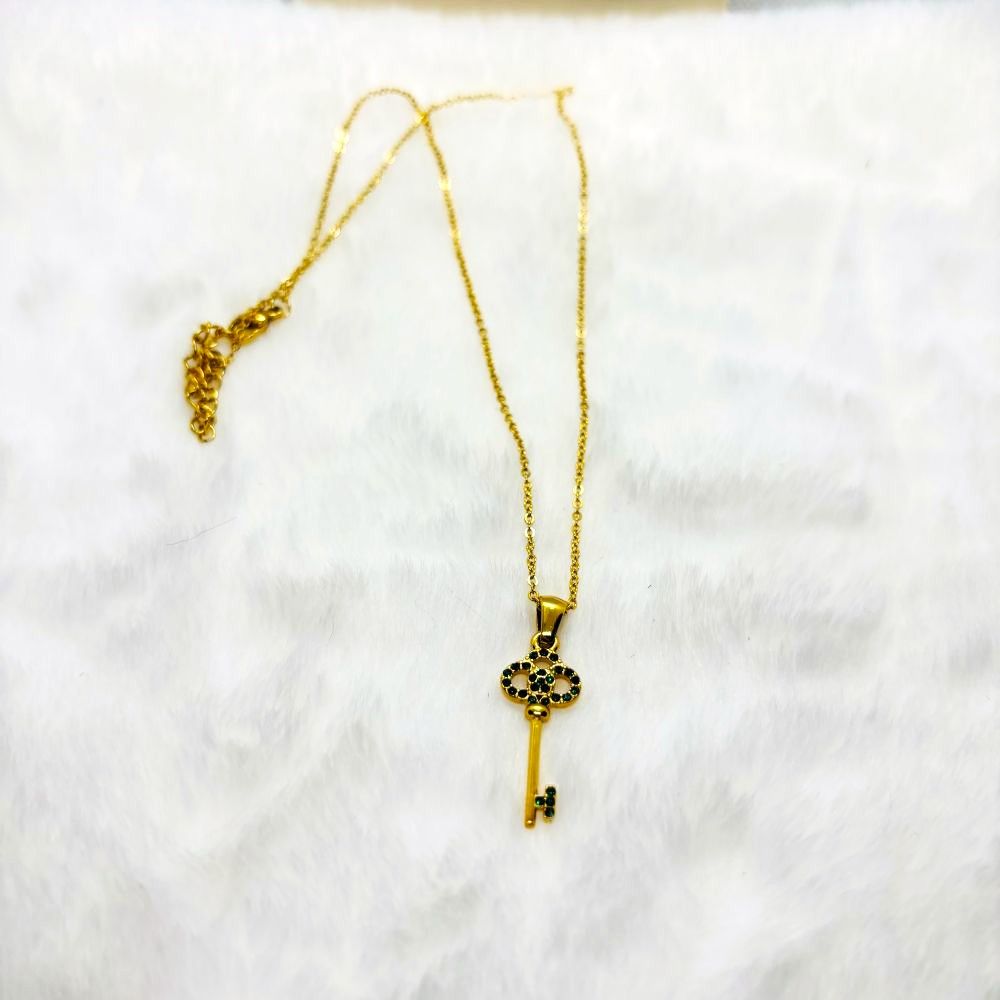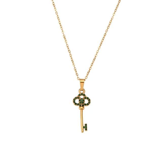 Unlock elegance with this stunning 18K Gold Plated Green Zircon Key Necklace, a timeless symbol of love, luck, and new beginnings. Designed with exquisite attention to detail, this piece features a delicate key-shaped pendant adorned with sparkling emerald-green zircon stones, creating a luxurious vintage charm.