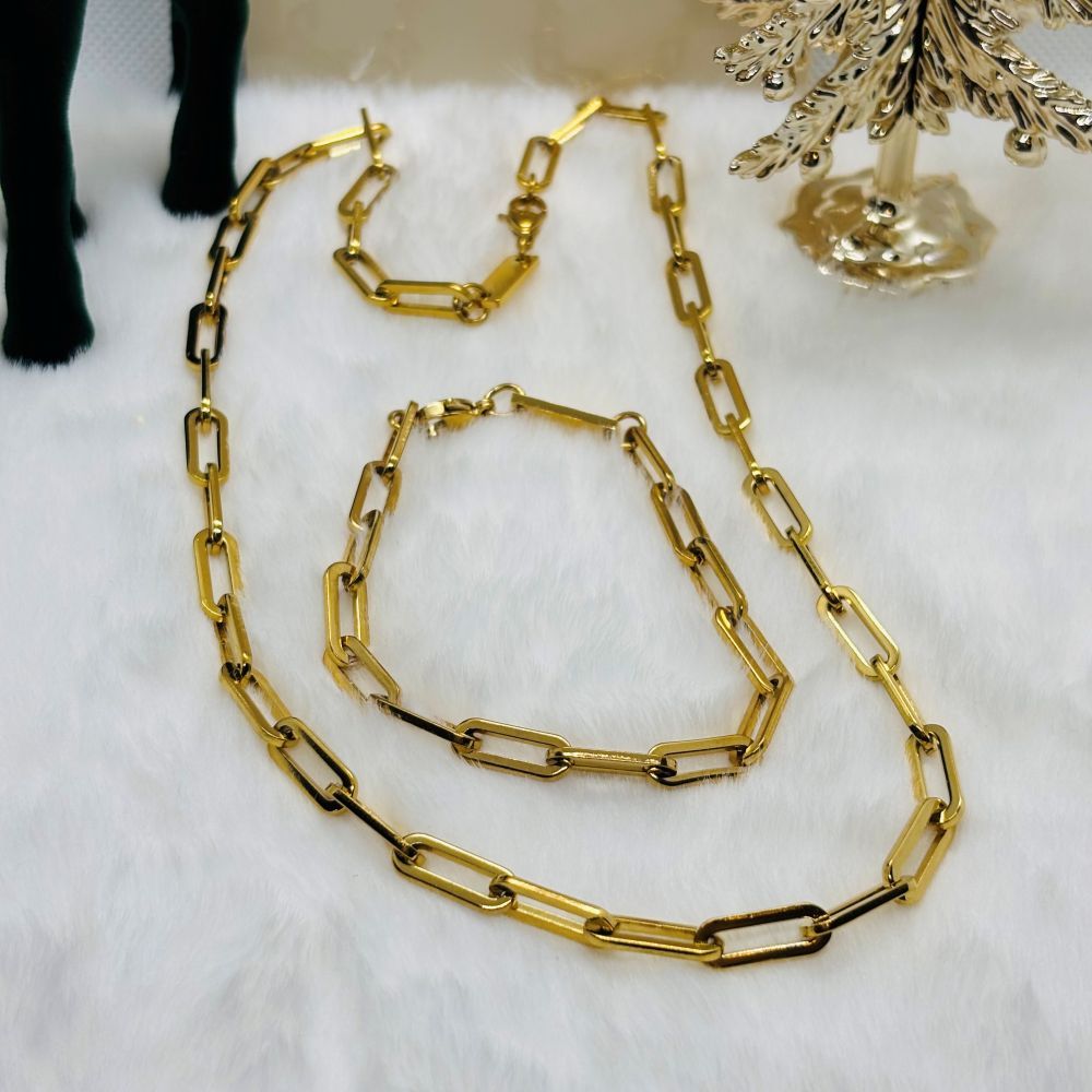 Keep your style simple, modern, and effortlessly chic with this Minimalist Solid Color Stainless Steel & Gold Necklace/Bracelet, designed with sleek elongated links and a polished finish. Crafted from premium stainless steel, this versatile piece offers long-lasting shine, durability, and resistance to tarnishing—perfect for everyday wear.