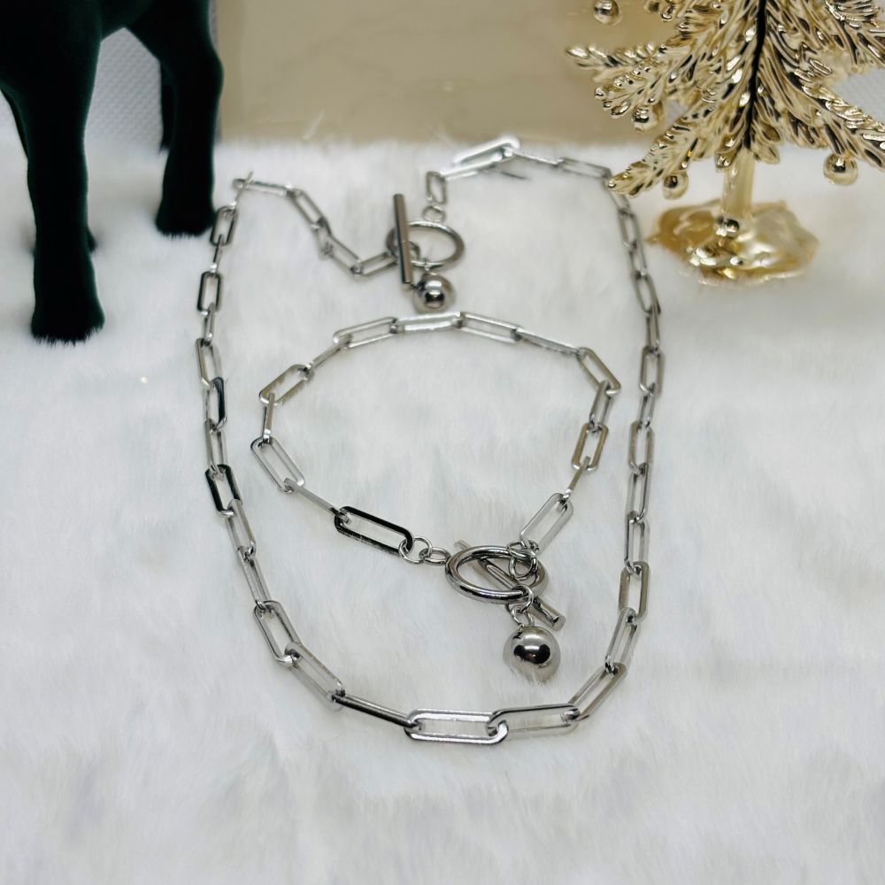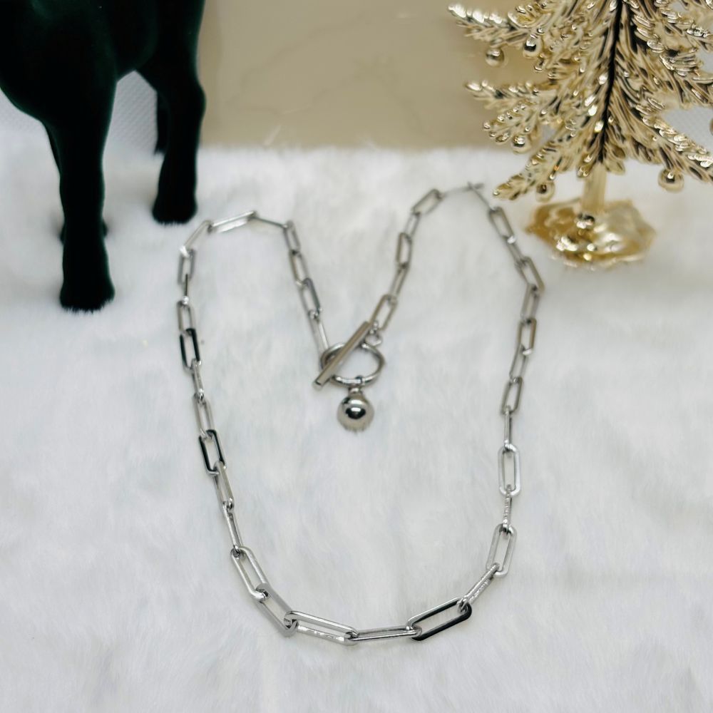 Finished with a luxurious 18K gold plated or stainless steel tone, this chain features a stylish toggle clasp and a subtle charm detail that adds a touch of elegance without overpowering your look. Wear it as a statement necklace, pair it with your favorite layers, or style it as a matching bracelet for a coordinated, minimalist aesthetic.