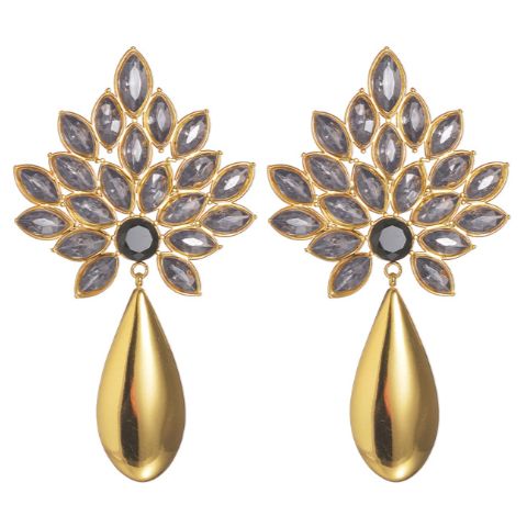 Vintage Gold Teardrop Flower Earrings | Rhinestone