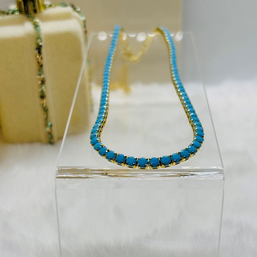 Turn heads with this Zircon Tennis Necklaces—your new go-to piece for instant glam. Its radiant zircon stones and sleek gold-tone setting deliver a stunning sparkle that elevates any look.